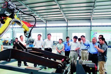 2012年6月1日至3日,對山普公司而言,注定是一個難忘的日子。中國工程院院士,工程力學(xué)專家與管理學(xué)家,暨南大學(xué)應(yīng)用力學(xué)研究所所長,原暨南大學(xué)校長,《科技創(chuàng)新與品牌》雜志社總編輯劉人懷教授;中國科學(xué)院院士,華中科技大學(xué)教授,機械工程與自動化專家熊有倫;中國工程院院士,大連理工大學(xué)教授、博士生導(dǎo)師、常務(wù)副校長,機械制造及自動化專家郭東明;本刊社長、執(zhí)行總編輯宋文芳,副社長田曉東等一行數(shù)人,赴山普公司進行科技調(diào)研。在山東大學(xué)控制科學(xué)與工程學(xué)院副院長李貽斌、山東大學(xué)自動化研究所所長、教授、博導(dǎo)田新誠、煙臺市科技局副局長王有林,萊州市市委常委、常務(wù)副市長國樹軍,副市長周濤,副市長李亞林,萊州市科技局局長劉宏,萊州市文峰街道辦黨委書記馬立平,街道辦主任劉濤等人的陪同下,調(diào)研組一行人聽取了山普公司董事長王淑慧、總經(jīng)理趙顯龍對山普公司的介紹,并饒有興趣地參觀了山普公司的“裝載機焊接機器人”項目。