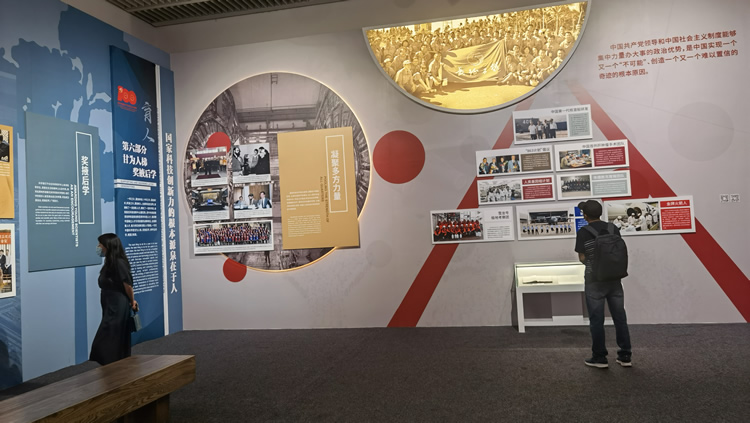 展覽共分6個(gè)部分和1個(gè)專題,圍繞“眾心向黨 自立自強(qiáng)”主題,以中國(guó)共產(chǎn)黨的堅(jiān)強(qiáng)領(lǐng)導(dǎo)和偉大指引為主線,用260余張圖片、190件套實(shí)物和11個(gè)多媒體的形式,將“兩彈一星”精神、西遷精神、載人航天精神、抗疫精神、探月精神等源于科技界的革命精神貫穿在一起。