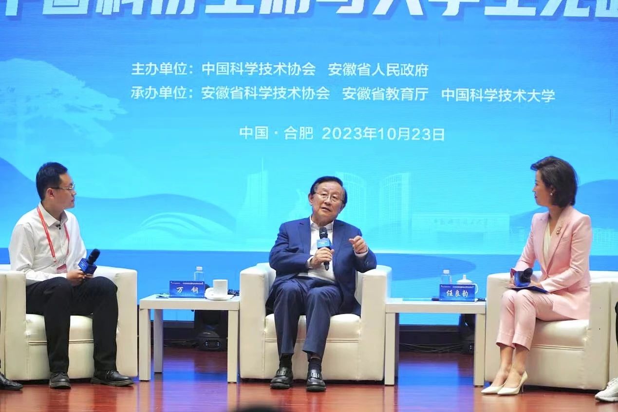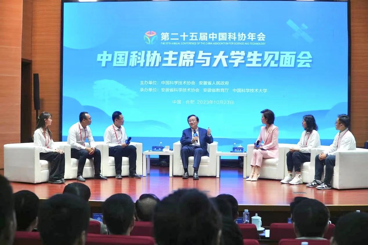 2023年10月23日下午,在中國(guó)科學(xué)技術(shù)大學(xué)水上報(bào)告廳,中國(guó)科協(xié)主席萬(wàn)鋼與來(lái)自中國(guó)科學(xué)技術(shù)大學(xué)、合肥工業(yè)大學(xué)、安徽大學(xué)、安徽農(nóng)業(yè)大學(xué)、安徽醫(yī)科大學(xué)等10所在皖高校的220名優(yōu)秀學(xué)子代表面對(duì)面暢談,就中國(guó)科學(xué)家如何應(yīng)對(duì)當(dāng)前全球性挑戰(zhàn)、基礎(chǔ)科學(xué)專業(yè)學(xué)生如何在中國(guó)科技發(fā)展中貢獻(xiàn)力量、如何理解科學(xué)普及與科技創(chuàng)新的關(guān)系、如何應(yīng)對(duì)科研實(shí)驗(yàn)中的不可控因素等問(wèn)題進(jìn)行了親切交流。