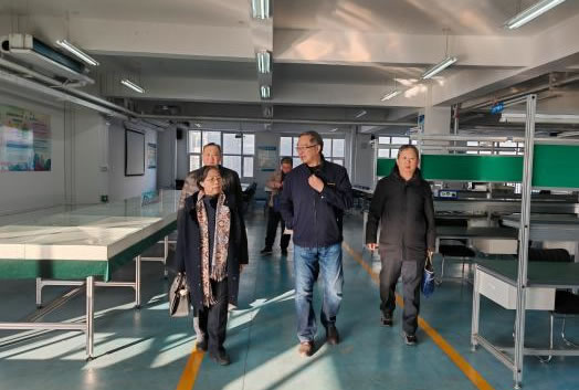 董事長鄧志成(前中)向調(diào)研組一行介紹公司實訓基地情況