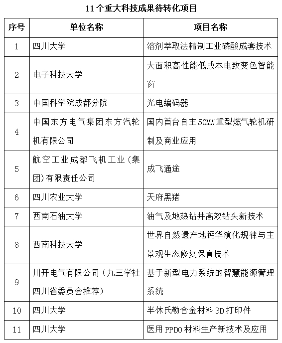 開幕式上,省科協(xié)副主席、中國工程院院士石碧,省科協(xié)副主席、中國科學院院士崔鵬,省科協(xié)副主席、鐵騎力士集團董事長雷文勇共同發(fā)布了31個重大科創(chuàng)項目,包括“溶劑萃取法精制工業(yè)磷酸成套技術”“光電編碼器”“國內(nèi)首臺自主50MW重型燃氣輪機研制及商業(yè)應用”等11個重大科技成果待轉(zhuǎn)化項目,“先進毫米波感知技術”“新型多用途ORC能量轉(zhuǎn)換技術”“特高土石壩建造成套技術”等10個重大高新技術待推廣項目,“超大尺寸構件均質(zhì)化構筑成型技術示范應用”“基于多源數(shù)據(jù)的隧道圍巖超前預判識技術的科學研究”“家用可燃氣體探測器(激光)的研發(fā)”等10個重大科技難題待攻關項目。中國工程院院士、四川大學教授王玉忠發(fā)布了北京市科協(xié)、重慶市科協(xié)帶來的“D9000PRO 多導睡眠腦電聯(lián)邦深度學習分析監(jiān)測設備”“碳捕集及資源化CCC工業(yè)示范裝置”等11個重大科創(chuàng)項目。