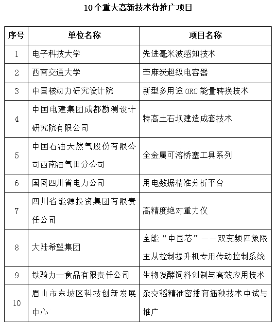本屆大會由省科協(xié)、省委組織部(省委人才辦)、省發(fā)改委等24家省直部門,民盟四川省委、農(nóng)工黨四川省委、九三學社四川省委3個民主黨派,并聯(lián)合四川大學、電子科技大學、中國科學院成都分院、東方電氣集團等24家重點企事業(yè)單位共同舉辦。大會以“市場需求主導+政府有效服務”方式,以大院大所大企業(yè)為主體,共征集科創(chuàng)項目8700個,從中遴選出4670個優(yōu)質(zhì)項目在會上集中推介。其中,待轉(zhuǎn)化的科技成果2430項、待推廣的高新技術1565項、待攻克的科技難題624項、金融創(chuàng)投產(chǎn)品51個(貸款產(chǎn)品43個、基金產(chǎn)品5個、保險產(chǎn)品3個)。