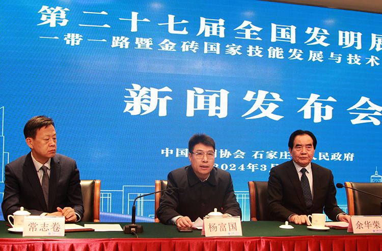 3月19日,中國發(fā)明協(xié)會(huì)和石家莊市人民政府在北京共同舉行新聞發(fā)布會(huì),宣布第27屆全國發(fā)明展覽會(huì)﹒“一帶一路”暨金磚國家技能發(fā)展與技術(shù)創(chuàng)新大賽將于5月22-24日在石家莊國際會(huì)展中心舉辦。