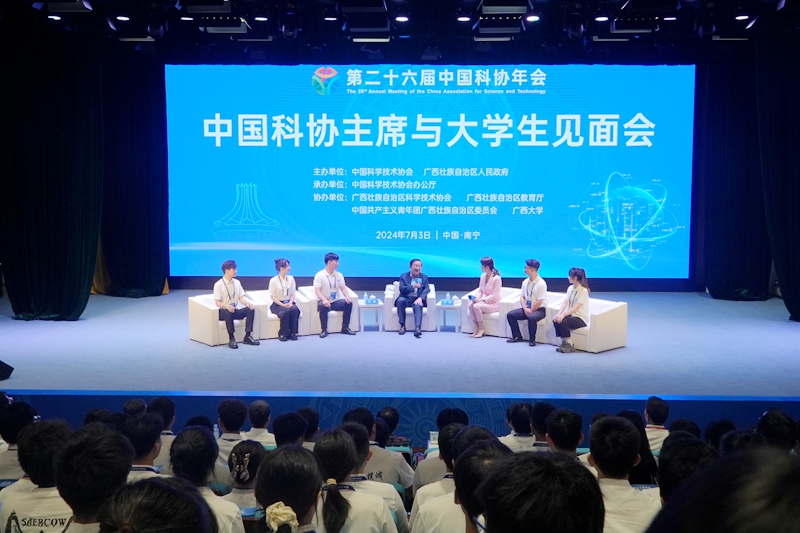 2024 年 7 月 3 日,中國(guó)科協(xié)主席與大學(xué)生見(jiàn)面會(huì)在廣西南寧舉行。中國(guó)科協(xié)主席萬(wàn)鋼與來(lái)自廣西大學(xué)、桂林電子科技大學(xué)、廣西師范大學(xué)、廣西農(nóng)業(yè)職業(yè)技術(shù)大學(xué)、廣西中醫(yī)藥大學(xué)、廣西民族大學(xué)、廣西醫(yī)科大學(xué)、北部灣大學(xué)等高校的優(yōu)秀學(xué)子代表進(jìn)行面對(duì)面交流。