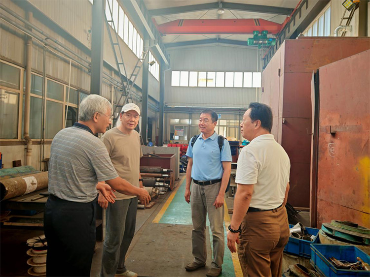 促進(jìn)會領(lǐng)導(dǎo)與董事長晏青在生產(chǎn)現(xiàn)場交流