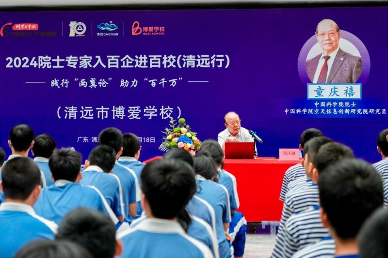 中國科學(xué)院院士童慶禧走進清遠市博愛中學(xué)開展科普講座。