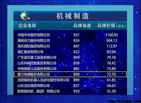 2019中國品牌價(jià)值評價(jià)榜權(quán)威發(fā)布,康力電梯穩(wěn)居中國電梯行業(yè)第1位