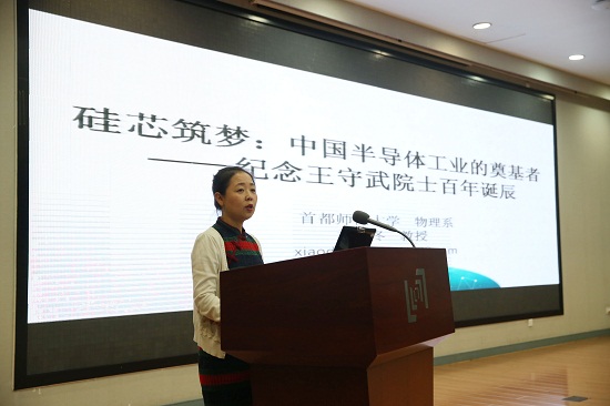 開幕展上,首都師范大學(xué)的尹曉冬教授作了題為《硅芯筑夢:中國半導(dǎo)體工業(yè)的奠基者——紀(jì)念王守武院士百年誕辰》的主題報告。王守武是我國著名的半導(dǎo)體器件物理學(xué)家。尹曉冬教授講述了王守武院士主持半導(dǎo)體研究機構(gòu)工作、開拓半導(dǎo)體激光領(lǐng)域、籌建我國第一個晶體管工廠、主持大規(guī)模集成電路生產(chǎn)等科研故事。通過詳細(xì)講述王守武的科研人生,讓觀眾進(jìn)一步領(lǐng)略到了老一輩科學(xué)家嚴(yán)謹(jǐn)求學(xué)的科學(xué)精神和科技報國的家國情懷。